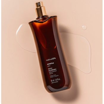 Modo de empleo: Con la piel seca, rocíe el Aceite Glorioso en la palma de las manos y extiéndalo por el cuerpo y el largo del cabello. Si lo prefiere, rocíe directamente sobre el área deseada, luego extienda