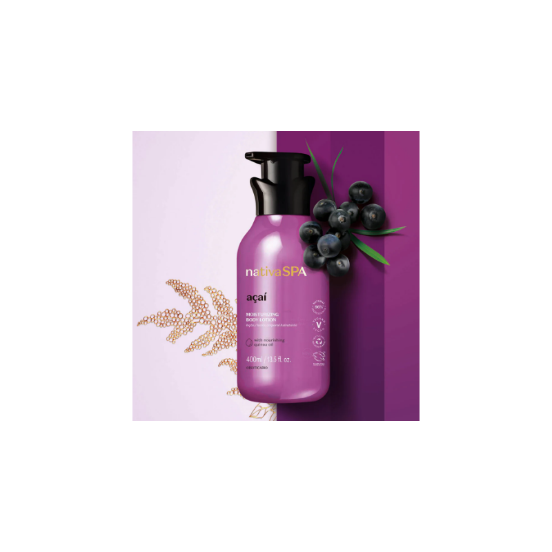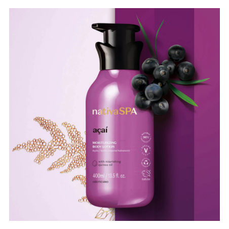 La Loción Hidratante Corporal de Açaí de Nativa SPA es el aliado perfecto para hidratar tu piel, brindándole la reparación que merece.