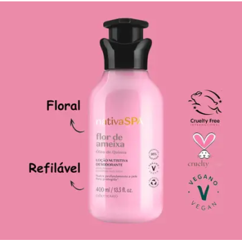 Para uma pele hidratada o dia todo. A sua pele merece cuidados especiais. Para isso, conte com o Nativa SPA Flor de Ameixa Loção Hidratante, a sua fórmula eficaz possui alto poder nutritivo, além de perfumar e hidratar a sua pele por até 30 horas.