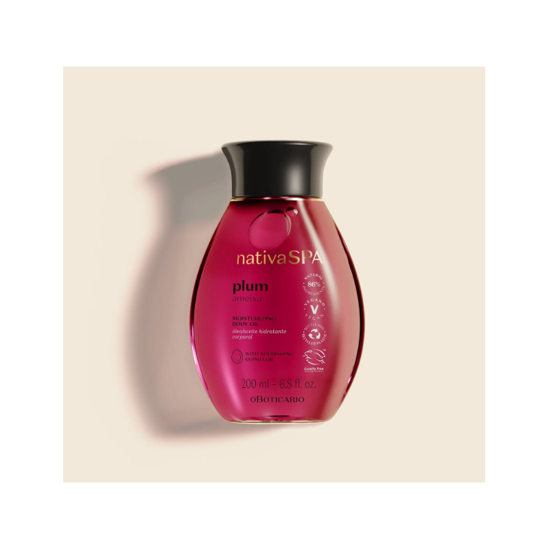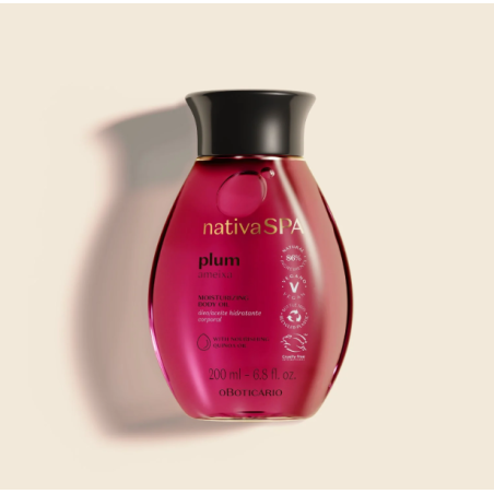 Nuevo envase Aceite Ameixa. Deje que el poder de la ciruela le aporte muchos beneficios a su cuerpo y la haga sentirse renovada todos los días. Un toque de ciruela en el baño proporcionará más cariño a su piel.